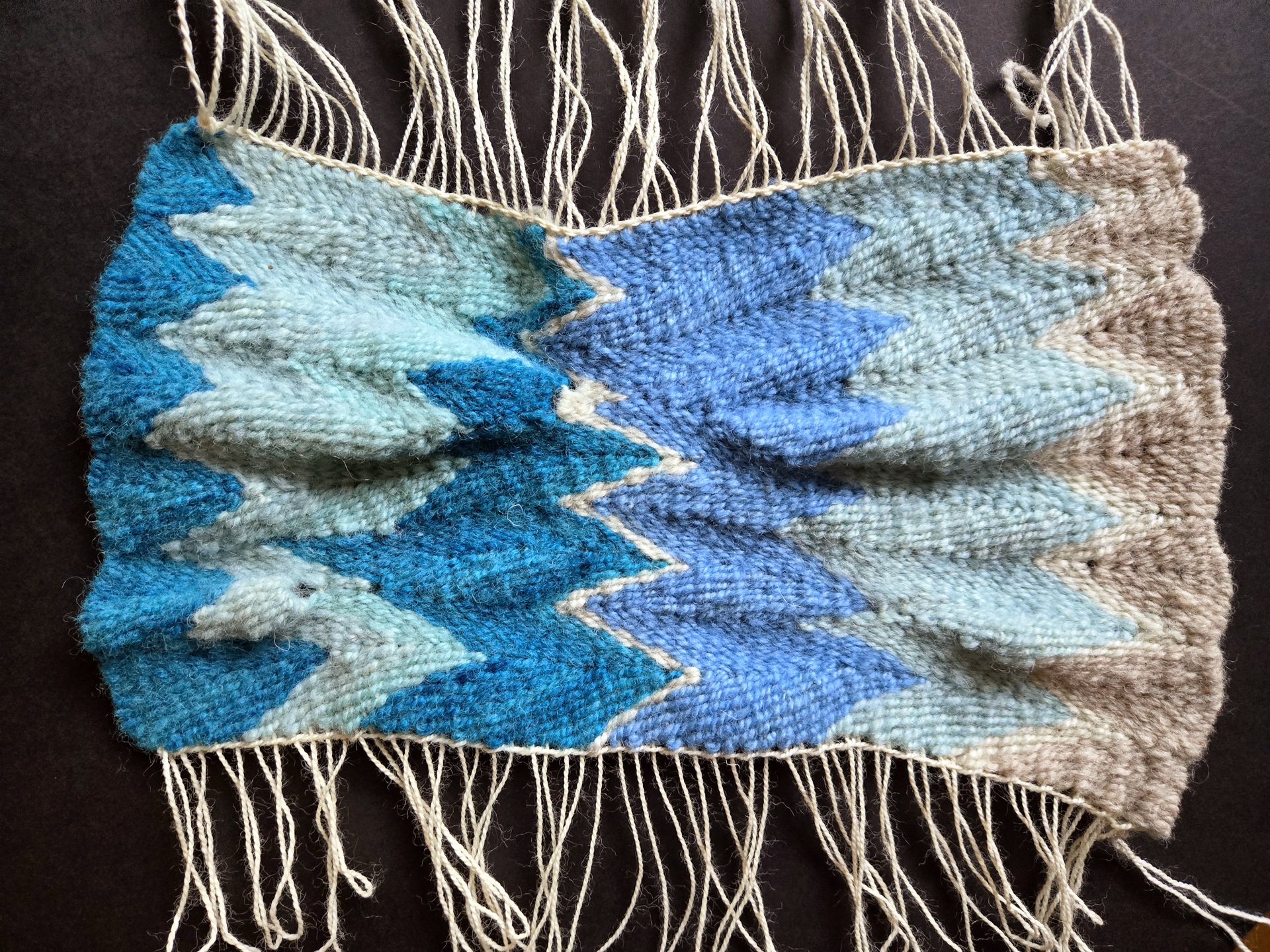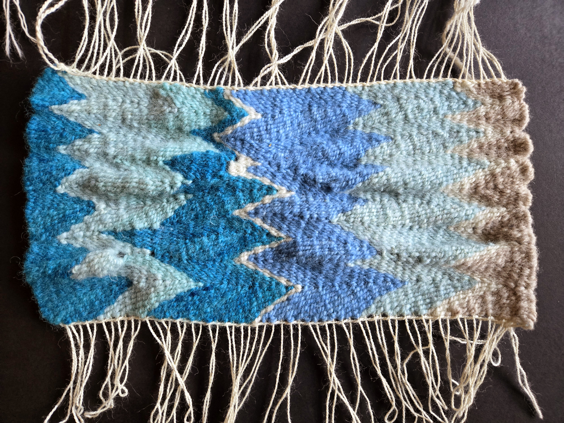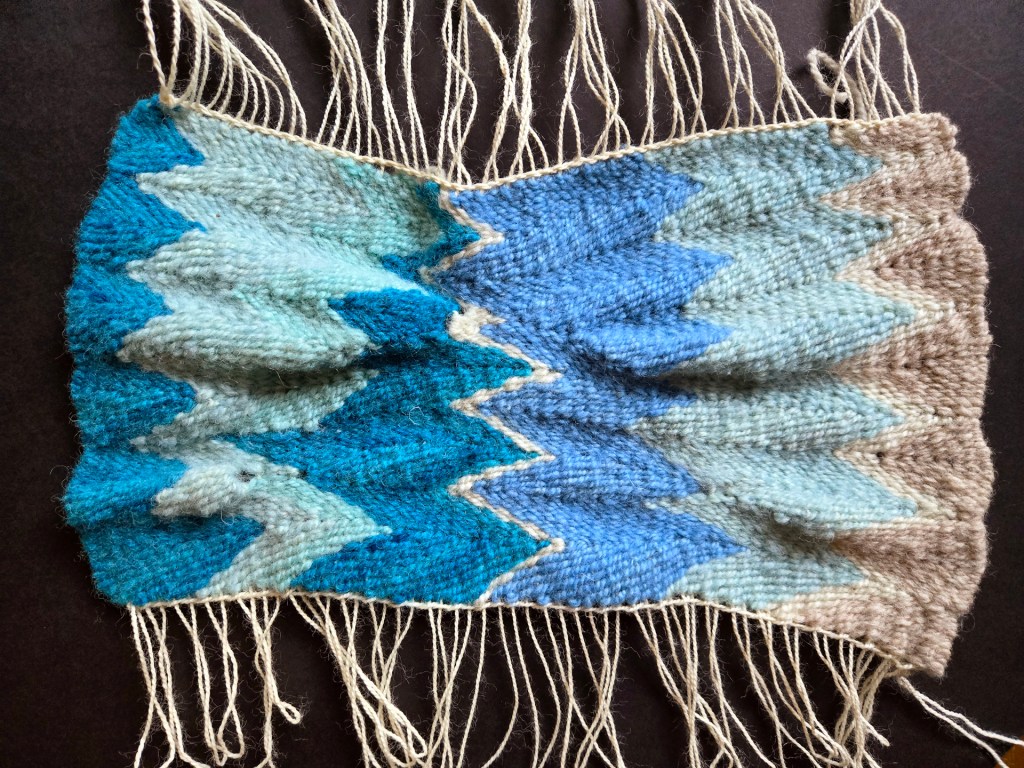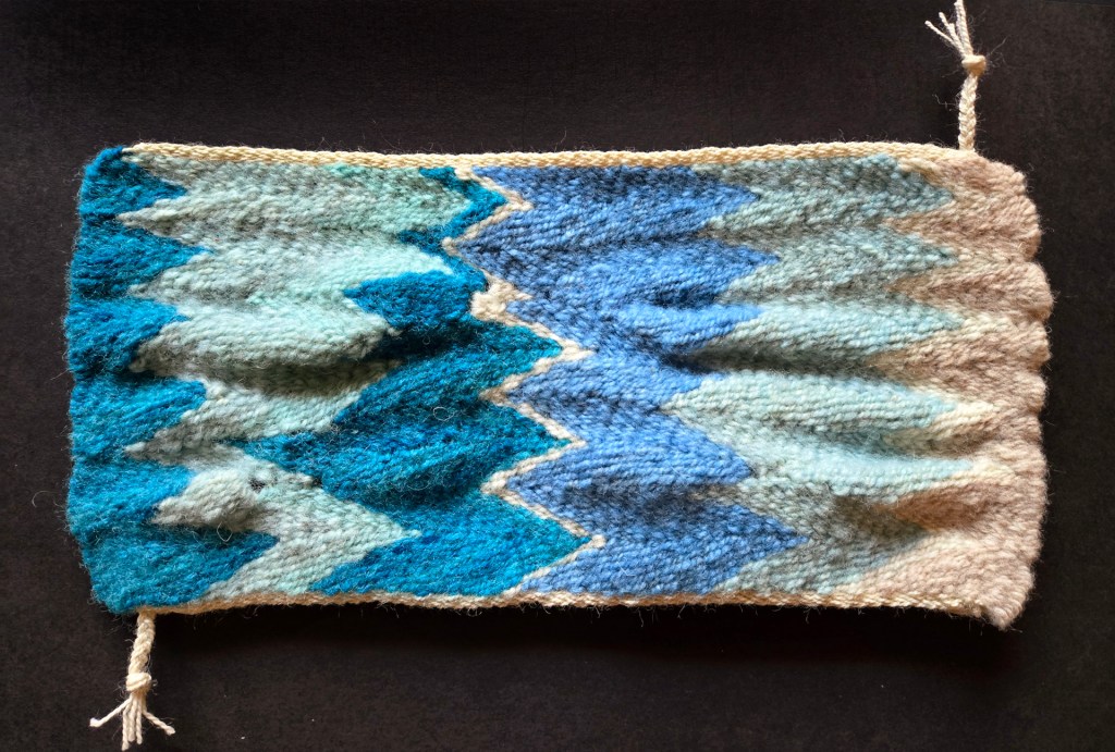 5.5 x 11.5 inches, wool warp & hand-dyed wool weft.