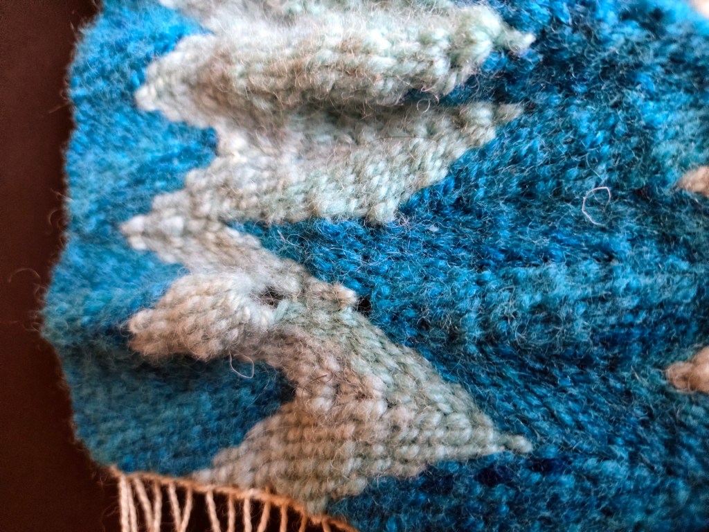 It was climate change that was on my mind as some tapestry friends came the end of their annual tapestry diaries and started planning new ones. Tommye Scanlin* is the master of this durational art form. The idea is to weave something of a diary entry every day. Some people use it as a daily art discipline or as a visual journal entry. I chose a third path: the year documented as art.