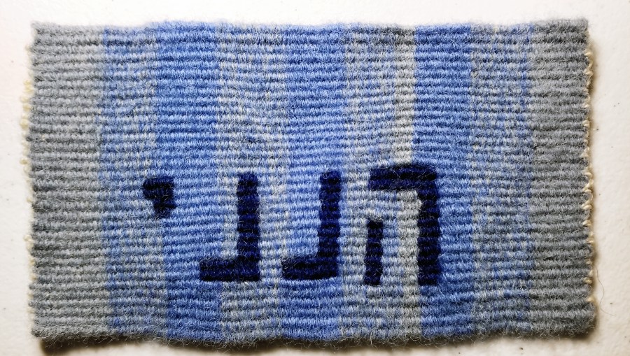 Hineni – Here I Am, fringeless technique, similar to a Diné weave. 4×7 inches, wool and cotton, ©2018 Jeane Vogel Studios