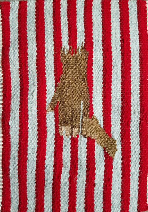 Refugee As Criminal. 11×7 inches. Wool warp and weft. 2018.